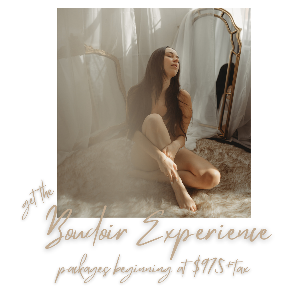 I will spend some extra time making sure you look your absolute best in your photos. This means smoothing the skin, and removing temporary blemishes like pimples, bruises, razor burn, etc. However, I will not alter your body, shape, or overall appearance. Boudoir is all about embracing your body as it is! If there are certain bits that you feel self conscious of, we will use posing and angles to draw attention away from those elements.